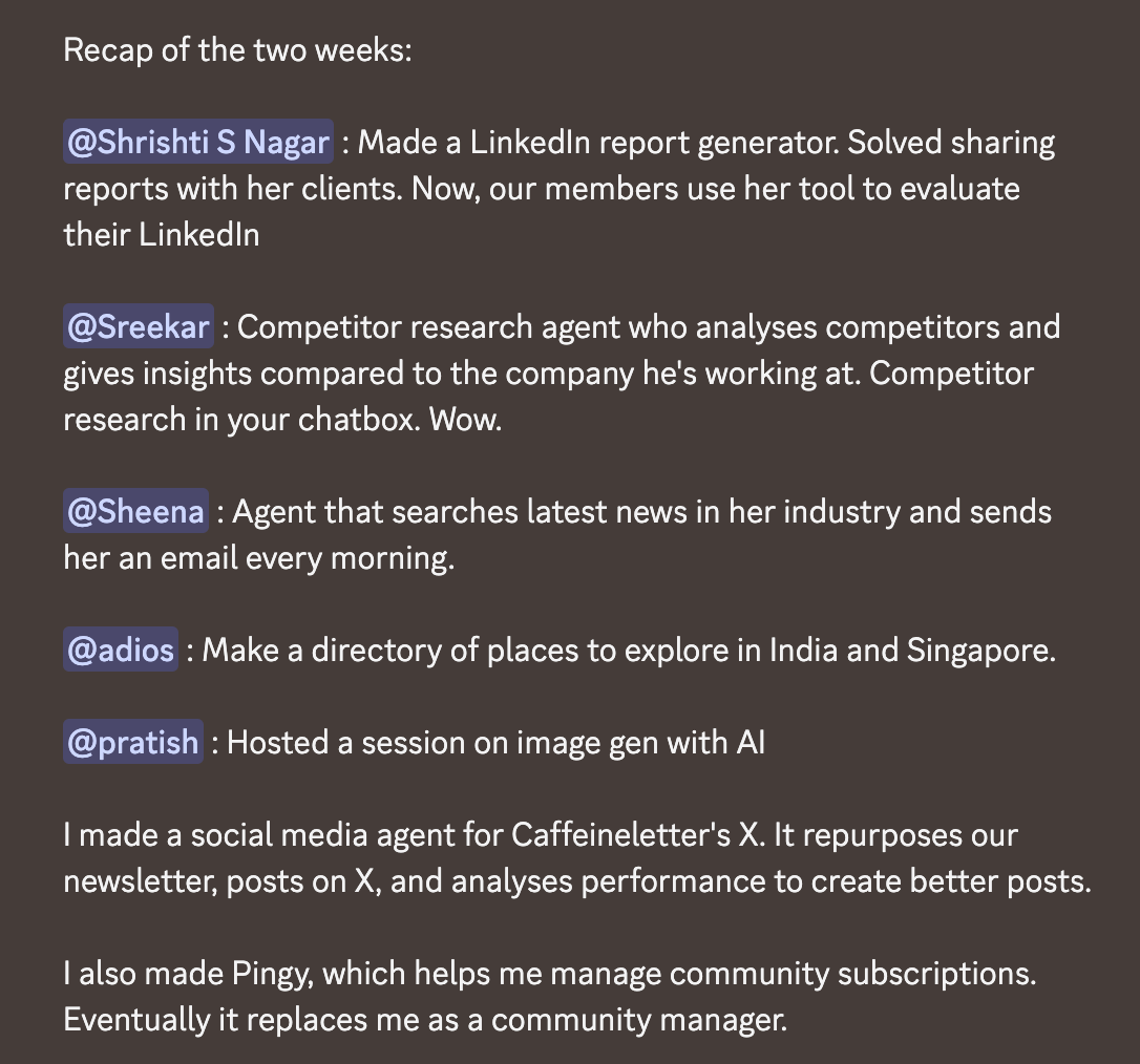 Sneekpeak into the community: What is one interesting message our community members shared last week?