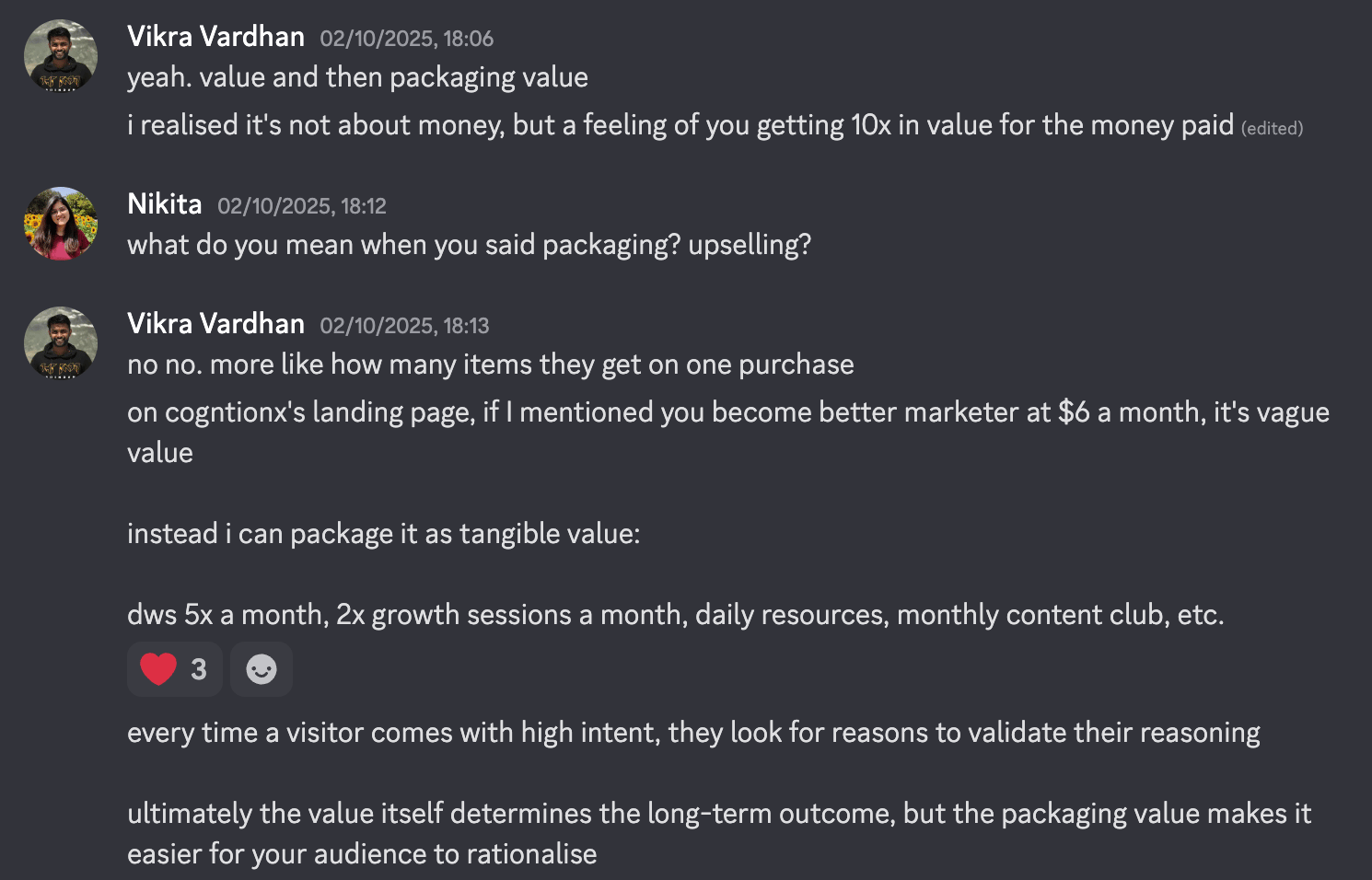 Beautiful objection handling. Most creators would talk about features and discounts. But Nathan asked about business and what’s stopping me from taking the next step. Like a thought exercise.